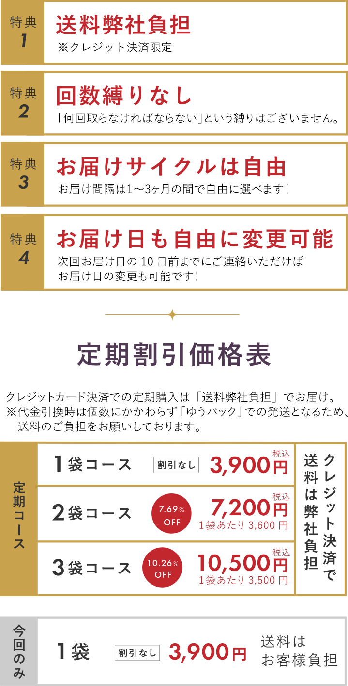 定期購入の場合は、次回お届け日の10日前までのご連絡で、次回分以降のキャンセルは可能です。